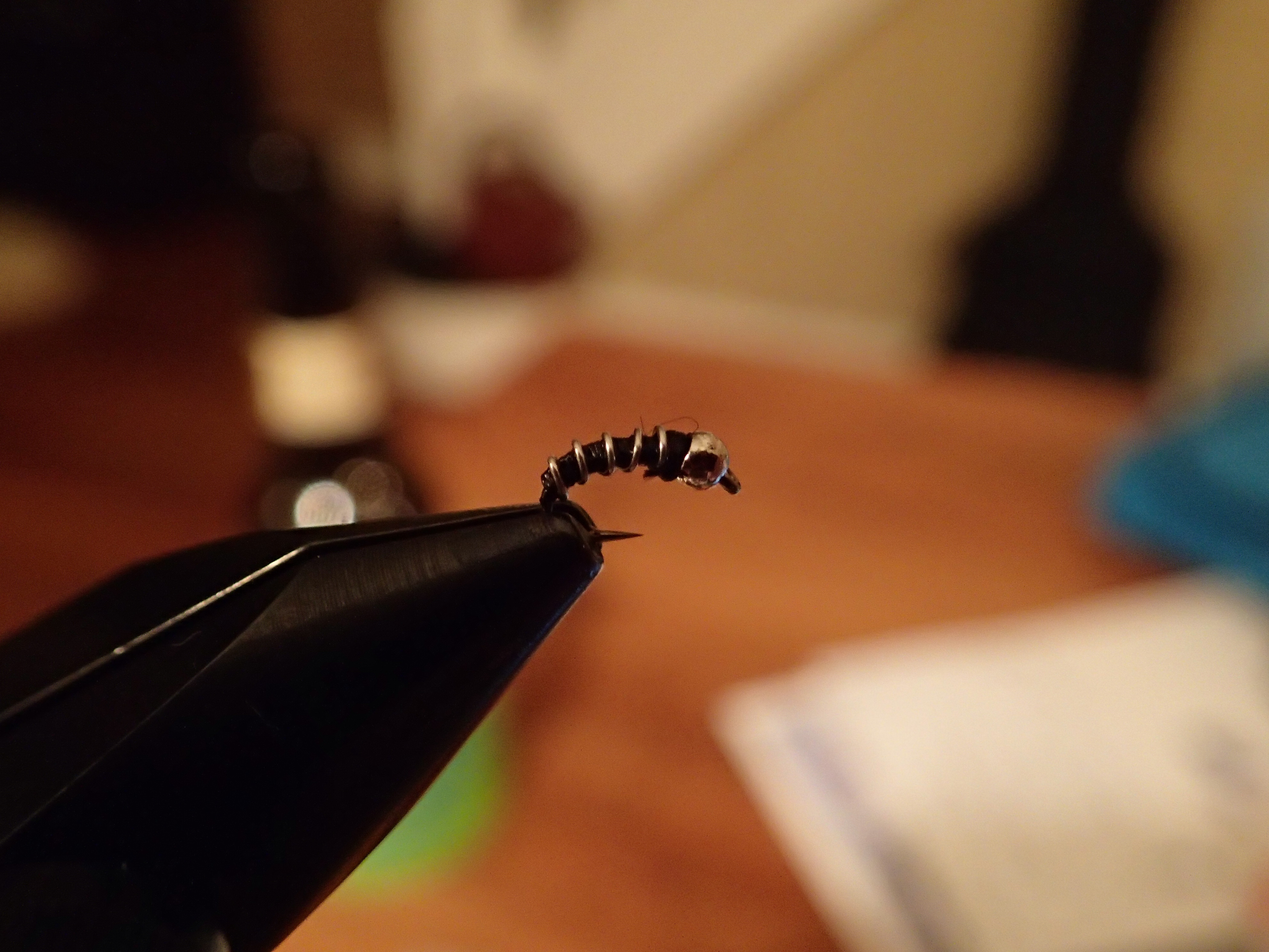 I’m not a great fly tier. The trout don’t seem to mind that much. The tungsten bead head helps the fly get down into the slow moving water in deep pools, where fish seem to concentrate when the water is colder. 7x tippet also seems to lead to more hookups.