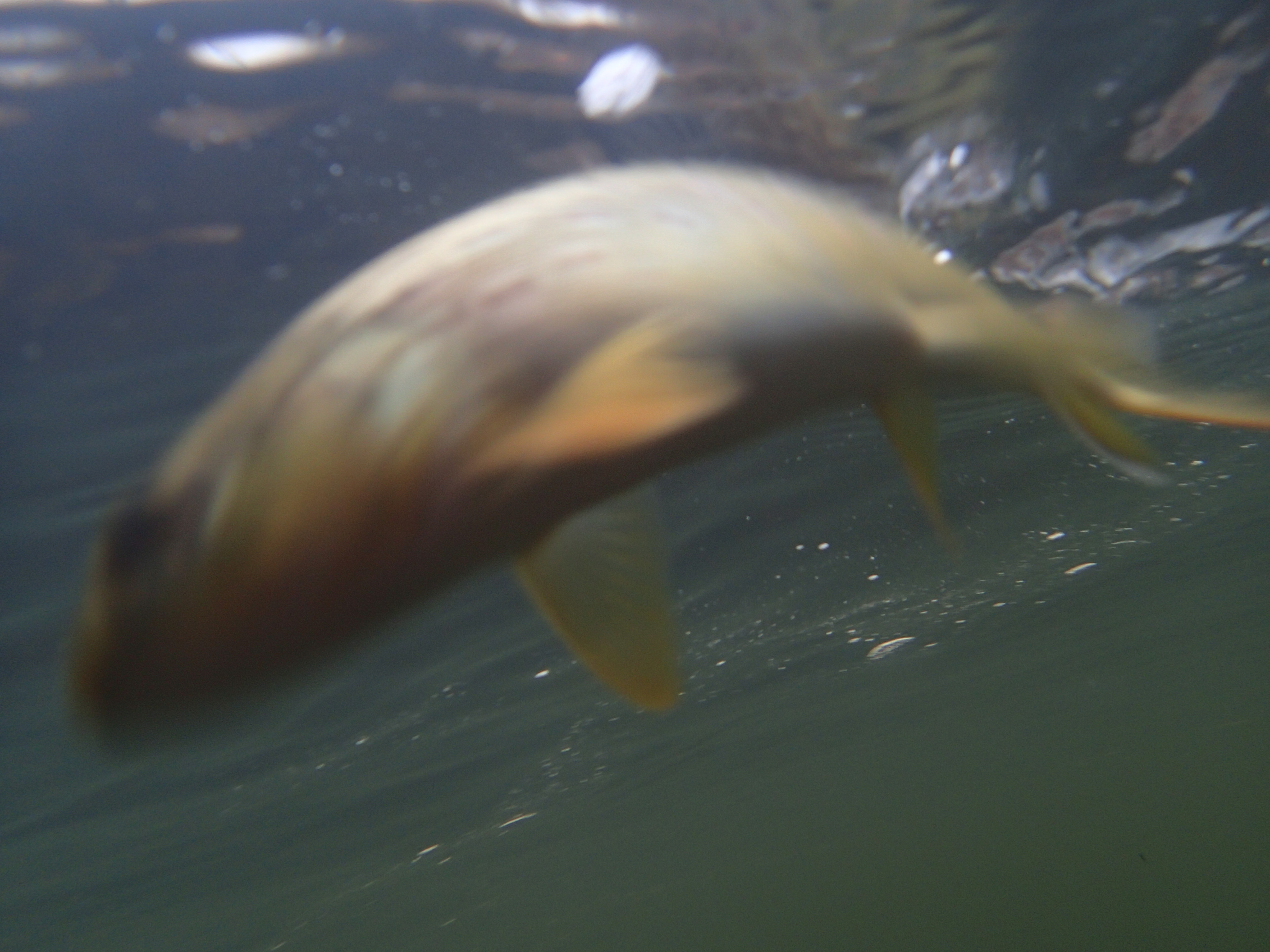 Unlike above water photos, strong sunlight helps with underwater shots from what I can tell. If it is bright enough and the trout is sufficiently still, you can get shots like this: