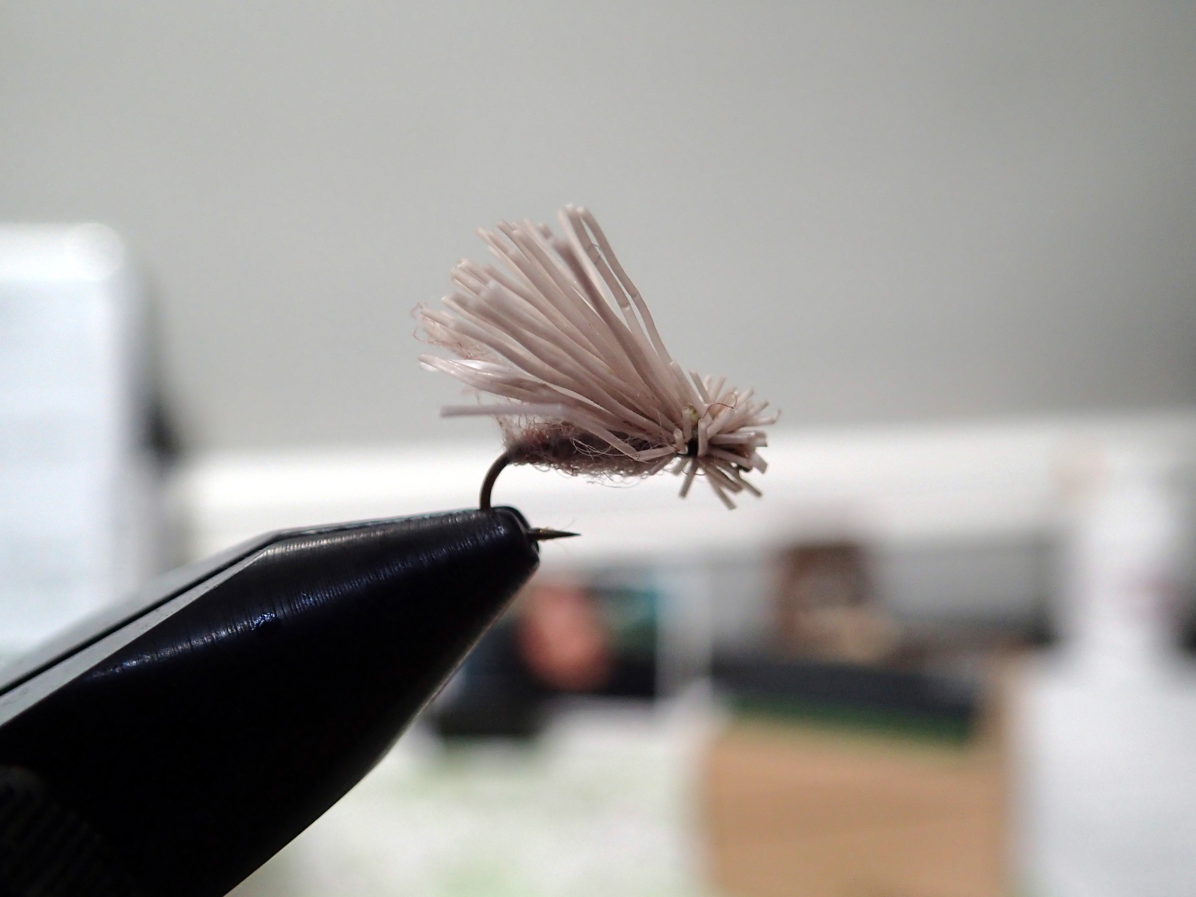 The tie couldn’t be more simple. Dub a body, then tie on a deer hair wing. That’s it. I use all sections of the deer hair, but the thickest ones float best. This fly floats better than any fly I have ever used, yet trails its tasty looking dubbed body in the film. This often entices very aggressive strikes. Nearly any color dubbing can work. My favorites are yellow, gray, and natural hare’s ear, but I have had success with half a dozen other colors. I also typically tie in size 14 or 16. You can match your flies to the size and color of caddis you see on the stream, or use it as an attractor.